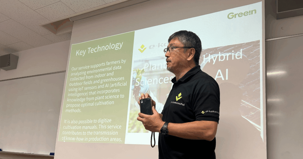 農業AIブレーン「e-kakashi」の開発および運営を中心的に担ってきた社員が独立して新たに設立した会社、それが Greein 株式会社。食べるものがあれば、紛争は起きない!そのために第二の緑の革命を起こしたい。情報活用で一次産業分野の発展と新たな価値を創造し、環境・天然資源・食糧問題の解決に貢献します。