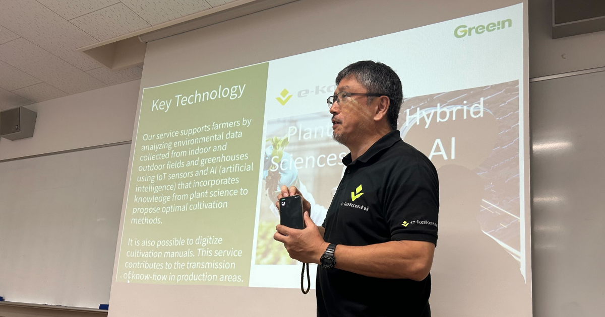 講義では、IoTセンシングとAIを活用した栽培管理システム「e-kakashi」の基本機能や、アジア諸国での実証事例を紹介。
