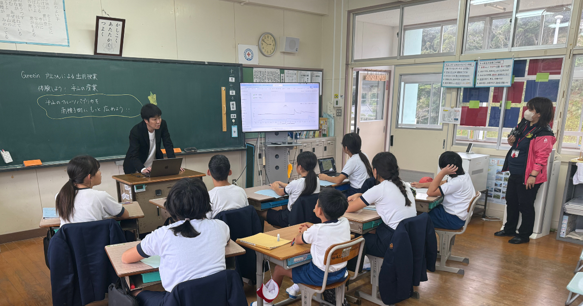 南種子町立平山小学校では、体験をその場限りにせず、データをもとに考え、判断する力を育てる授業に取り組んでいます。 生産者の現場での実践と教室での学びを、データを共通言語につないだ出前授業。 学校教育と地域、農業DXが連携する取り組みはコチラ