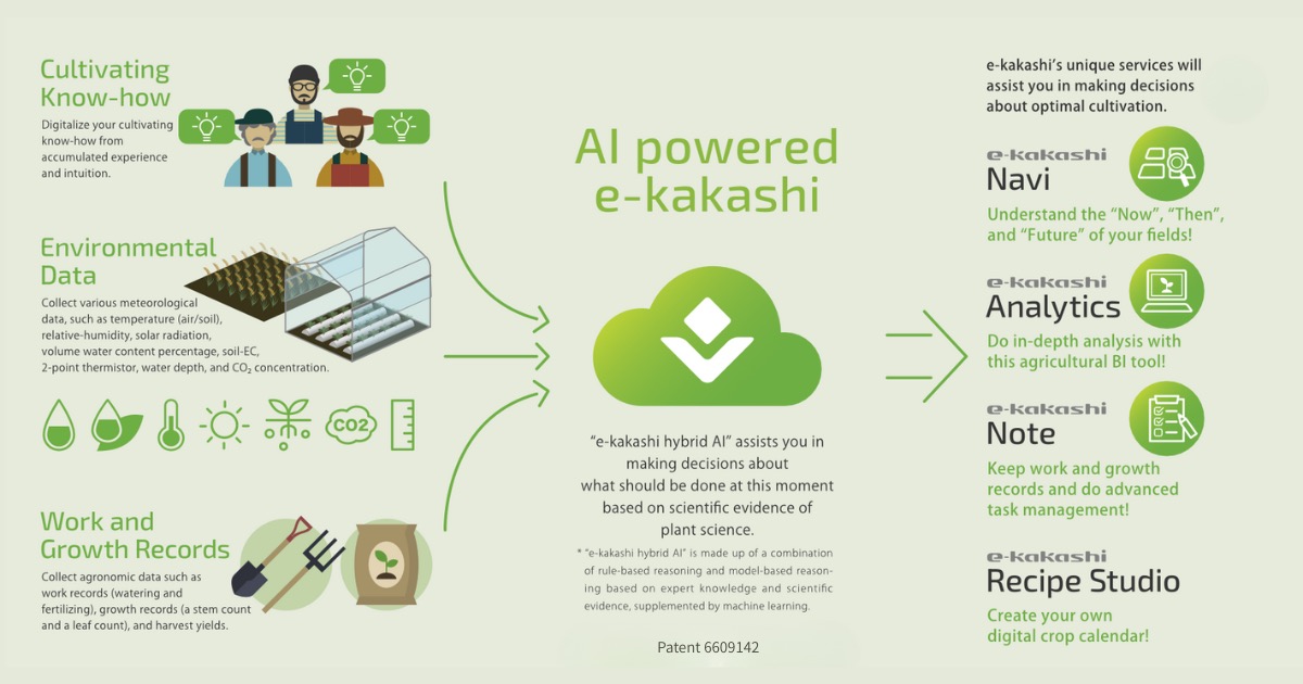 Cultivation assistance based on scientific evidence using the agricultural AI-powered brain ‘e-kakashi’.